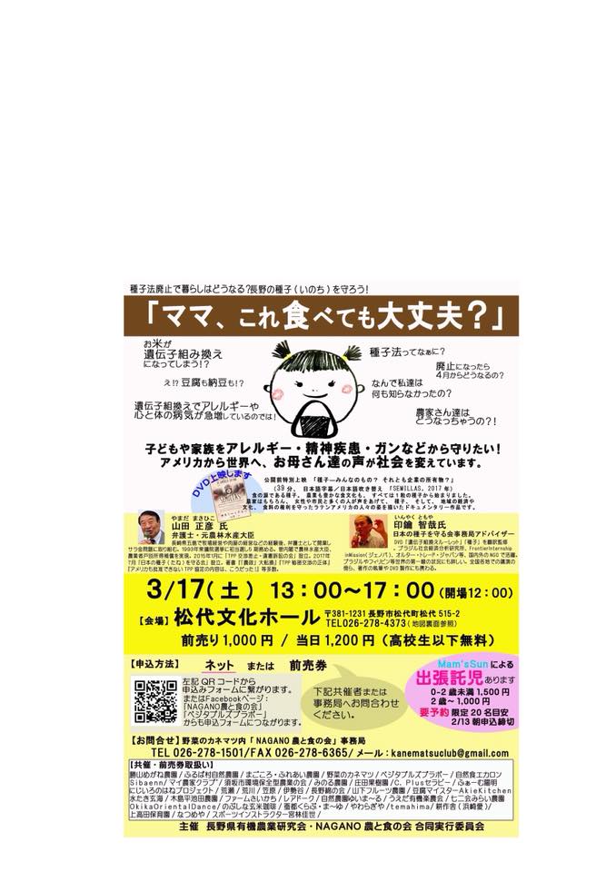 僕の所属する長野県有機農業研究会と、仲間が運営・共同代表を務めているNAGANO農と食の会の合同イベントとなっております。