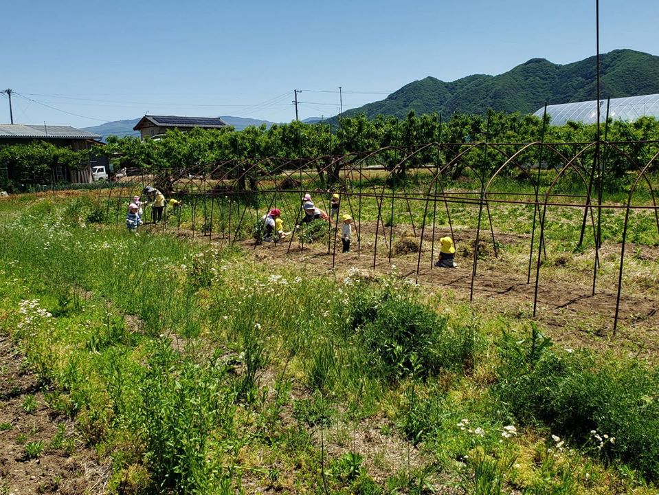 めがね農園が昨年からコラボさせて頂いている小布施の「みらいく保育園」さん。園児さんが草取りしてくれてる写真が届きました。何だか嬉しいなぁ。